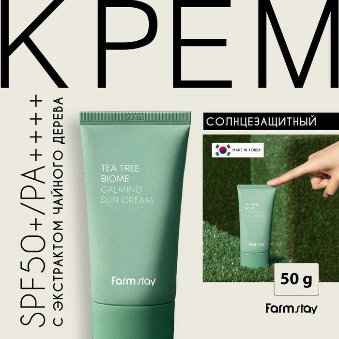 Совместные покупки Магнитогорск Косметика и парфюмерия Солнцезащитные средства — Солнцезащитный крем с экстрактом чайного дерева FARMSTAY Tea Tree Biome Calming