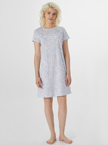 Женское домашнее платье с коротким рукавом и V-образным вырезом, длиной выше колена.