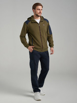 Классический мужской спортивный костюм состоит из худи на застёжке-молнии и брюк на манжетах. Всесезонная ткань сделает его любимым в Вашем гардеробе как для дома, так и улицы.