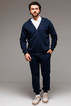 Состав: Футер 2-х ниточный, 75% хлопок, 20%  полиэстер, 5%  лайкра. Куртка: Съёмный капюшон, два прорезных кармана с обтачками с застёжкой на тесьму-молнию, боковые подрезы и отрезная кокетка, в цвет отделки, воротник втачной, дублированный. Брюки: Три кармана с застёжкой на тесьму-молнию, по низу брюк кулисы, в поясе резинка для регулировки объёма. Таблица размеров и ростов Размер 48 50 52 54 56 58 60 62 64 Обхват груди, см 92-96 98-102 104-108 110-114 116-122 128-132 134-138 140-144 146-150 Обхват бёдер, см 99-102 103-106 107-110 109-113 114-117 118-122 124-128 130-134 136-140 Рост, см 170-176 176-182 176-182 182-188 182-188 182-188 182-188 182-188 182-188