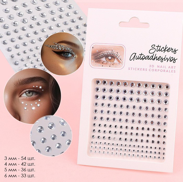 Добавьте блеска и уникальности вашему образу с самоклеящимися стразами для макияжа. Эти стильные элементы декора предназначены для использования на лице, волосах, теле и даже ногтях, позволяя вам создавать неповторимые образы для любых случаев. Они легко наносятся и удаляются, что делает их идеальными для быстрого преображения. Серебристый цвет придаёт вашему макияжу изысканный и гламурный вид.Стразы являются универсальным аксессуаром, который отлично подходит для праздников, вечеринок или фотосессий.