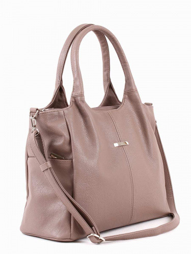 Сумка женская с тремя отделениям на молнии. По бокам и на задней стенке - карман на молнии. Внутри среднего отделения - открытый карман для сотового и карман на молнии. Высота ручек - 18 см. Регулируемый съемный ремень.