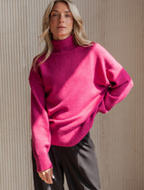 Вязаный джемпер трепецевидного силуэта , длиной до линии бедер.Рукав рубашечного покроя стандратной длины.Вырез горловины кругый со свитерным воротником.