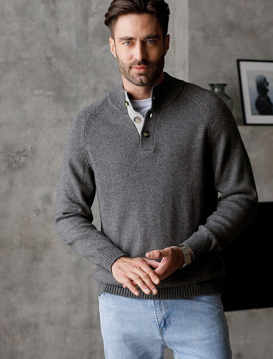 Состав: 35%Вис 27%ПАН (акрил) 23%ПА 15%Шерсть Параметры модели на первом фото: Рост 190, бюст 111, талия 88, бедра 105Свитер плотной вязки с застежкой на акцентные черепаховые пуговицы. Модель выполнена из теплой пряжи с шерстью. Внутри стойки контрастная пряжа, с помощью пуговиц можно регулировать высоту воротника и носить свитер как джемпер. Гармонично дополнит как повседневный образ, так и нестрогий офисный комплект, с рубашками, футболками или водолазкой. Модель дополнена фирменным логотипом бренда.