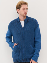 ESENIA Кофта-жакет мужская на молнии плотной вязки - Тёмно-синий