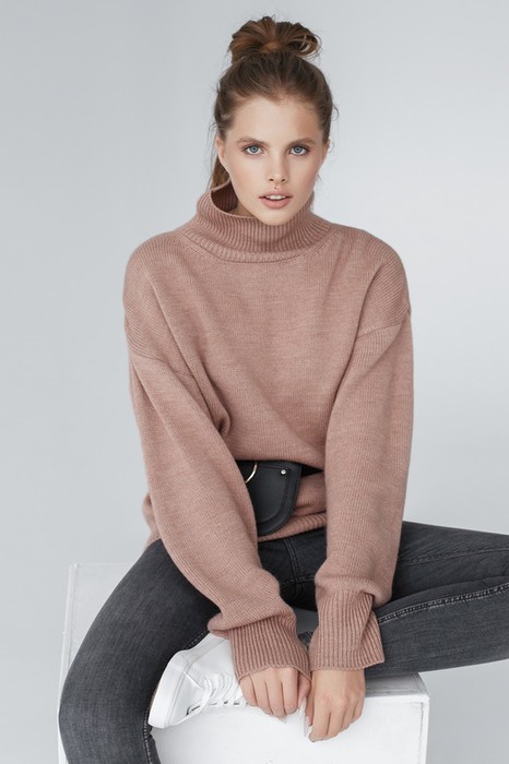 Свитер с высоким горлом в стиле «оверсайз» свободного кроя.
