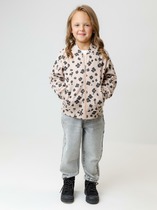 Свитшот прямого силуэта с втачными длинными рукавами, по линии низа имитация текстильной рубашки. Изделие выполнено из полотен контрастного цвета и разной текстуры, на полочке есть принт. Горловина круглая и обработана притачной бейкой. В качестве дополни