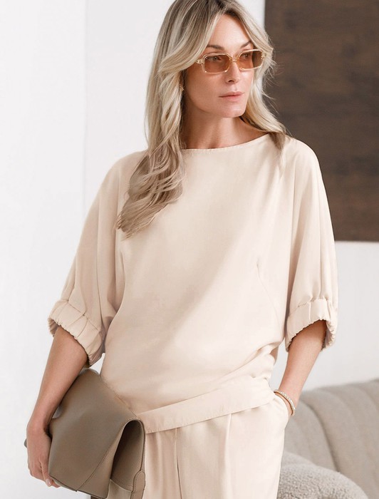 Совместные покупки Магнитогорск Женская одежда Костюмы, комплекты — Свободная блузка с вырезом лодочка из плотного лиоцелла