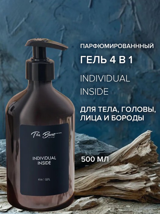 Натуральный гель 4 в 1 для тела, головы, лица и бороды INDIVIDUAL INSIDE эффективно очищает, увлажняет и питает, оставляя легкий аромат и ощущение свежести.