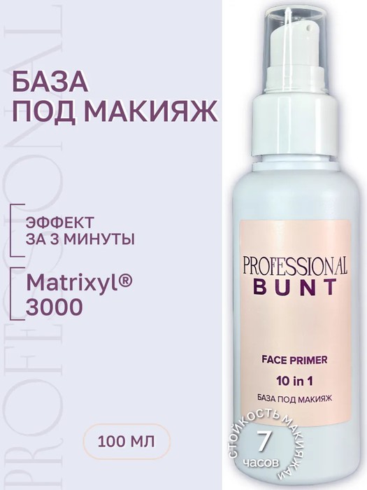 Этот праймер для лица станет идеальной основа под макияж, выравнивая тон кожи. Легкая текстура праймер под макияж Bunt Professional ложится на кожу невесомо, создавая идеальное полотно для нанесения тонального крема.