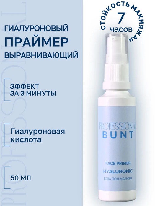 Этот праймер для лица станет идеальной основа под макияж, выравнивая тон кожи. Легкая текстура праймер под макияж Bunt Professional ложится на кожу невесомо, создавая идеальное полотно для нанесения тонального крема.