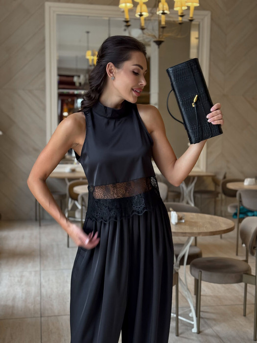 Элегантный топ с воротником стойкой.Топ свободного силуэта без рукавов. Он придаст женственности и игривости образу благодаря полупрозрачному кружеву.Легко комбинируется с юбками, шортами.