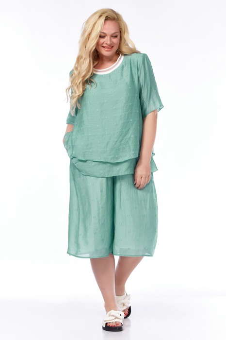 Блузка свободная А-образного силуэта, двухслойная, рукав втачной, горловина  округлая с притачным трикотажным довязом.