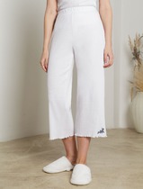 Укороченные брюки с поясом на резинке из фактурного трикотажа в рубчик с вышивко