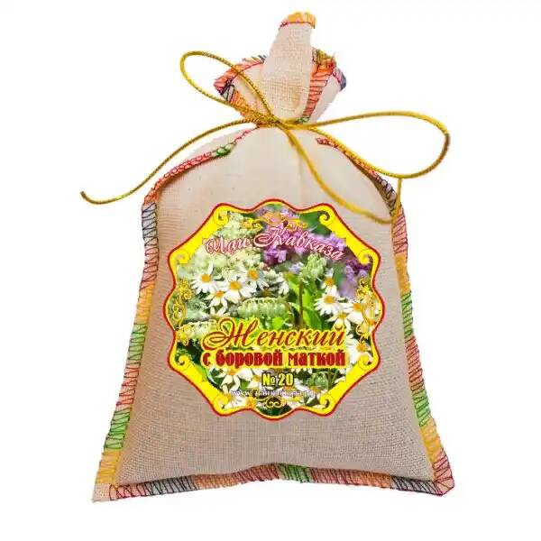 Состав: боровая матка, ромашка цвет, лабазник цвет, мелисса, душица. Сбор рекомендуется для нормализации менструального цикла, для профилактики и комплексной терапии гинекологических заболеваний воспалительного характера (фиброма матки, эрозия шейки матки, воспаление маточных труб). Улучшает общее состояние женского организма при климаксе.