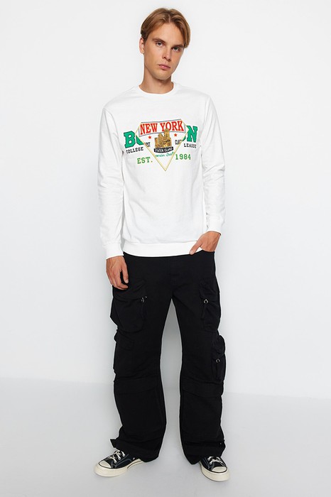 Совместные покупки Магнитогорск Мужская одежда Джемперы, свитеры — TRENDYOL MAN Ecru Мужской свитшот обычного/нормального кроя с круглым вырезом TM