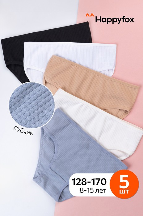 Безупречная классика! Набор трусов в рубчик для девочек и девочек подростков выполнен из трикотажного хлопка. В комплекте однотонные трусики пастельных цветов, 5 шт, в проймах эластичные бейки.