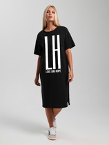 Туника из кулирки. Короткая молния у ворота. Рукава отсутствуют, общая длина до середины бедра. Принт в виде надписи Париж и Лондон, белые декоративные полоски. Несколько расцветок — голубая, горчичная, зеленая, розовая. Размеры от 42 до 52. Имеется возможность розничного приобретения данного товара.
