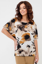 Удлиненная туника из кулирки. Темно-синий фон, полосатые вставки, красная окантовка. На передней стороне принт в виде девушки в шляпе и надписи. Рукава короткие, общая длина до середины бедра. Размеры от 44 до 58. Внимание, товар не продается в розницу!