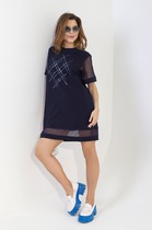 Туника из кулирки с добавлением лайкры. Рукава короткие, общая длина до середины бедра. На груди стилизованное изображение сердца из разрезов