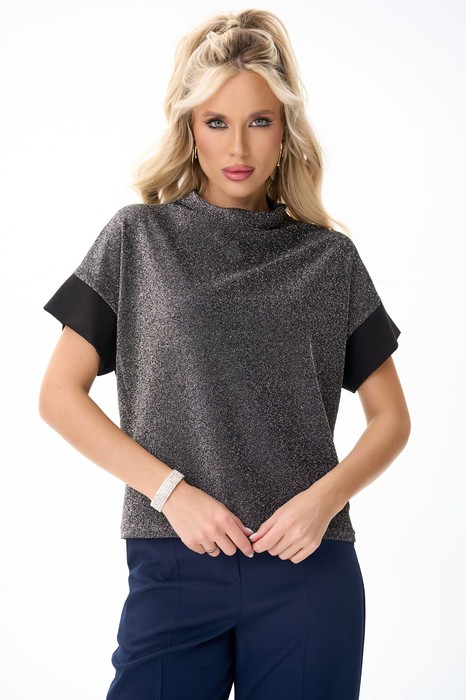 Туника «Лючия» — универсальная модель, выполненная из мягкого эластичного полотна с эффектным мерцающим покрытием. Лёгкий блеск ткани делает образ выразительным, но при этом остаётся в рамках сдержанной элегантности. Свободный силуэт комфортно садится по фигуре, не стесняя движений и визуально корректируя линию плеч. Укороченный рукав дарит аккуратный и женственный акцент, а мягкая драпировка в области горловины создаёт более утончённый вид. Туника сочетается с брюками, юбками и базовыми вещами, подойдёт и для повседневных образов, и для вечерних выходов. Лёгкая, универсальная и всегда уместная — модель, которая смотрится стильно без усилий.