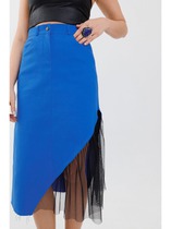 Юбка-карандаш на узком притачном поясе. Низ изделия декорирован широким ажурным кружевом . Потайная застежка-молния и разрез расположены в среднем шве заднего полотнища юбки.