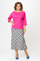 Оригинальная длинная юбка с асимметричным подолом, выполненная из гладкого приятного к телу вискозного материла с узором. Модель расклешенного кроя, линия талии на резинке.
