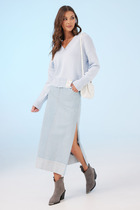 Длинная летняя юбка, выполненная из мягкого натурального льняного материала. Юбка высокой посадки, с боковыми карманами, втачной пояс и скрытая молния на спинке.