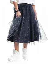 Плиссированная юбка из трикотажа с ярким набивным принтом. Талия на резинке. Трикотажная подкладка.На ребенке представлен размер 110:- Ширина изделия по линии талии 24,5 см- Ширина по низу изделия 73,5 см- Длина изделия 26 смРазница между размерами составляет 1,5 см.