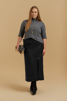 Юбка асиметричного кроя, из классической костюмной полоски, по переду пояс вставка, по спинке пояс с эластичной резинкой.