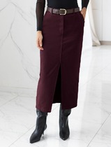 Юбка женская, изготовлена из тонкого плотного джинса в полоску. Юбка прилегающего силуэта, слегка зауженная к низу. Передние половинки с двумя наклонными боковыми карманами, спинка со швом посередине, со шлицей. Юбка на поясе частично с резинкой.