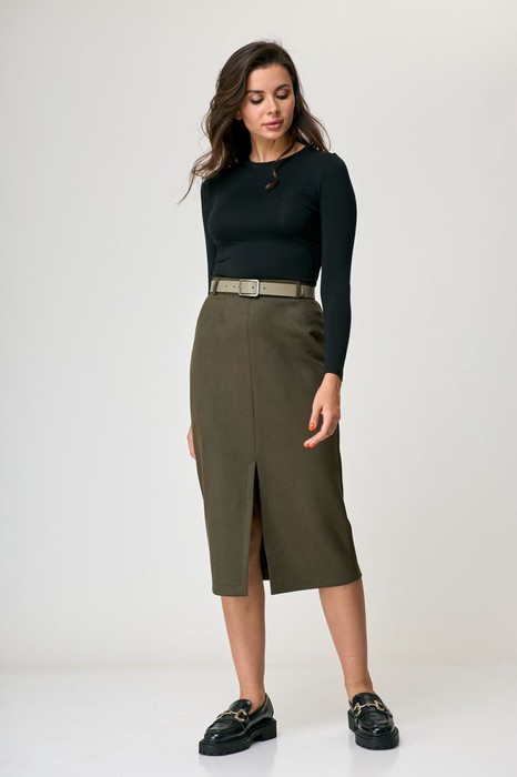 Юбка женская, силуэт карандаш, длина миди. По переду игривый разрез. По спинке фигурные накладные карманы, в среднем шве потайная застежка молния. Пояс притачной на петлю пуговицу. Дополнительно талию можно подчеркнуть при помощи съемного пояса. Отличная база для любого образа, актуальные цвета, идеальная посадка.