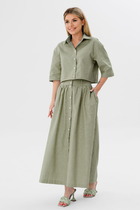 27.03 Vilatte Юбка миди на запАх в полоску из легкого хлопкового поплина D26.20