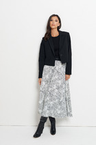 Юбка из принтованного жаккарда с отделочными деталями из экокожи.