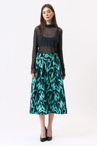 Юбка полуприлегающего силуэта выполнена из ткани плащевки на брендированной подкладе. Характеристики: полуприлегающий силуэт, пояс на резинке, по низу изделия пришито кружево. Длина по боковому шву 40 см.