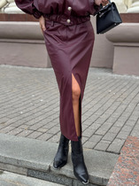 Юбка в длине макси, выполнена из струящегося синтетического шелка, форма годе, пояс обработан широкой резинкой.
