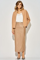 Юбка А образного силуэта, по переду и спинке рельефные швы, по переду от рельефа до бокового шва, карманы с листочкой, застежка на молнию в центральном шве переда. Верх юбки на поясе с застежкой на кнопки.