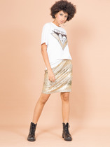 Юбка А-образного силуэта, на притачном отстроченном поясе на резинке. По переду с центральной застежкой на петли пуговицы. Юбка карманами в боковых швах, без подкладки..