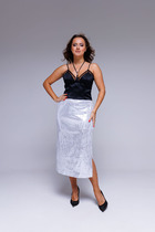 Шёлковая струящаяся ткань выгодно подчеркивает достоинства и срывает недостатки. Идеальный вариант для создания стильного и женственного образа. Универсальный дизайн подойдёт как для повседневных, так и для офисных образов. Молния у юбки сбоку, что делает комфортной ее в носке и при надевании. Качественная и плотная ткань, которая не будет просвечивать, струится по фигуре, подчеркивая достоинства. Она идеально сочетается с блузами, топами или рубашками от ELZA позволяя создавать множество различных образов.