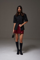 Юбка выполнена из плотного атласа. Юбка расширенная к низу, на притачном поясе, длиной миди.Переднее и заднее полотнища цельные и выкроены по косой. Застежка в левом боковом шве на потайную молнию и пуговицу. Юбка без подкладки.
