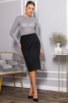 Юбка миди прилегающего силуэта из струящейся сатиновой ткани с добавлением шелка; пояс притачной, в боковые швы которого вставлена резинка для лучшего прилегания; застежка на молнию, петлю и пуговицу.