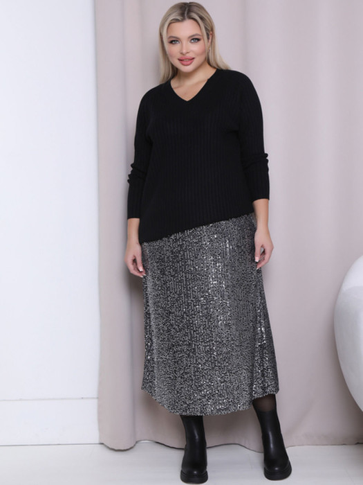 Расклешенная юбка из пайеток на сетке на притачном поясе с резинкой и шлевками.
