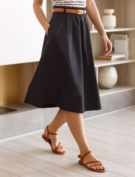 Юбка на широкой резинке с карманами из плотного поплина