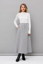 Юбка - солнце макси с узким поясом. В боковых швах расположены карманы. Застёжка на петлю и пуговицу и молнию по спинке.