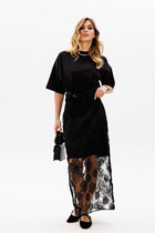 Юбка в бельевом стиле в длине мини, выполнена из струящейся ткани с матовым блеском. Пояс с кружевной отделкой, обработан резинкой для регуляции размера. Низ юбки декорирован кружевом.