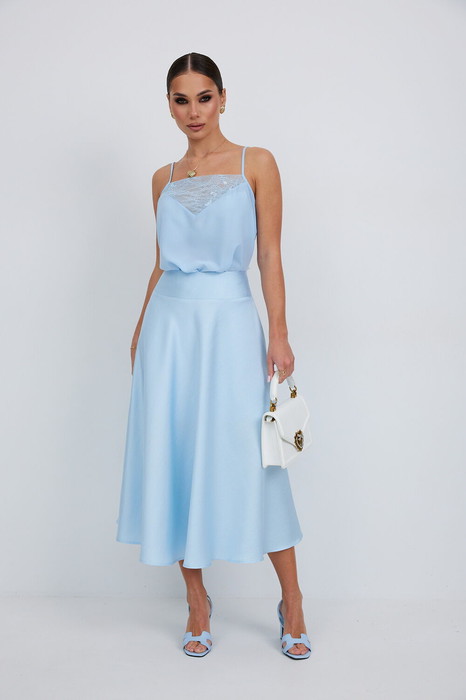 Юбка из костюмно-плательной ткани «полусолнце» с кокеткой, длины «миди». Застежка- молния в боковом шве. Юбка на подкладке. Длина 83 см.