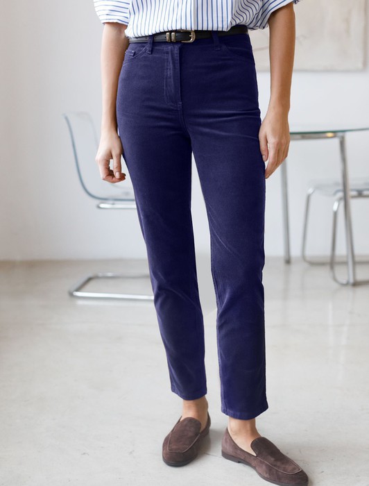 Укороченные эластичные брюки слим из микро вельвета