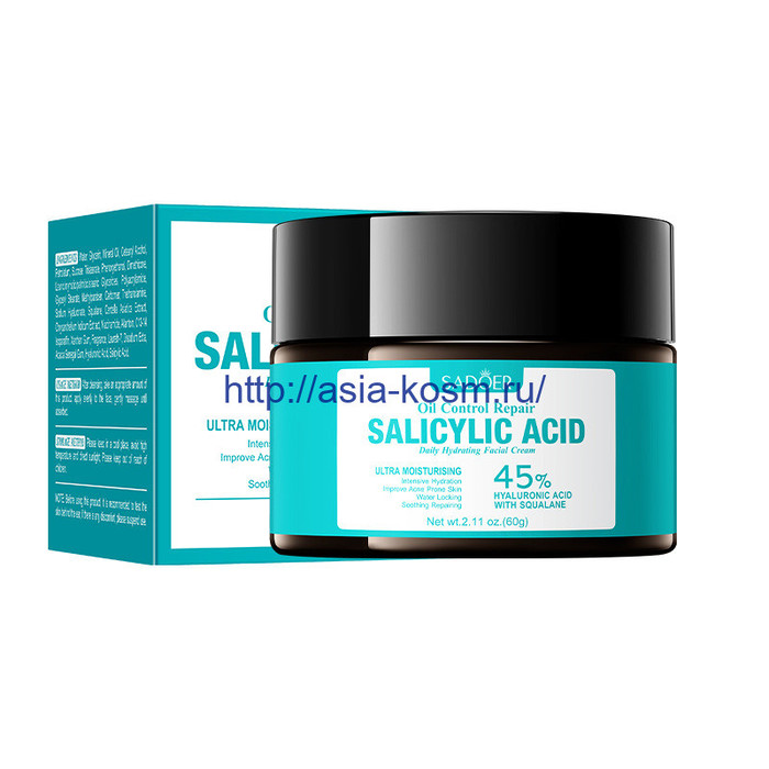 Салициловая кислота входящая в состав крема нежно отшелушивает ороговевшие клетки, сужает поры, активно борется со следами пятен и рубцов после прыщей, обеспечивает вашей коже ровный и сияющий тон.
