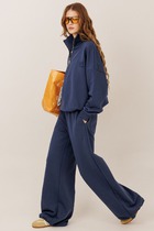 Брючины слегка заужены к низу, на щиколотках — плотные манжеты, благодаря которым обладательницам этих брюк не страшны ни снег, не холодный ветер. Пояс -резинка, внутри имеется шнурок для регулировки талии, два боковых кармана на молнии.