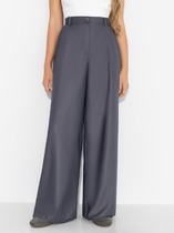 Стильные женские брючки на поясе с завышенной линией талии. Модель прямого кроя, на поясе — молния с клепкой, по бокам вшита резинка, имеются два боковых кармана.